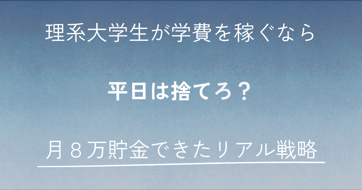 理系大学生で学費稼ぐなら、平日は捨てろ?私のバイト戦略