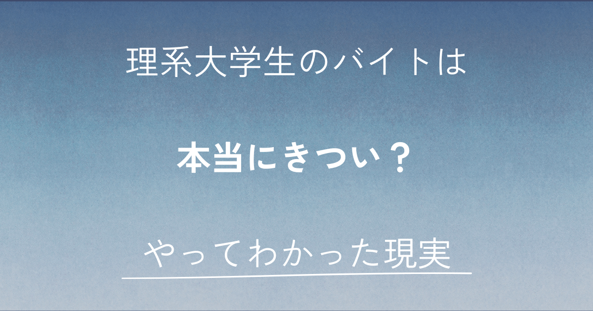 これからバイトを始めようとしている理系大学生の参考になれば嬉しいです。