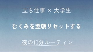 立ち仕事のバイト終わり、脚がパンパン。ベッドに入ってもだるさが抜けない。朝になってもむくみが残っている。そんな日、ありませんか?理系大学生の私は、実験・レポート・立ち仕事バイトの三重コンボで脚のむくみにずっと悩んでいました。でも今は、夜10...